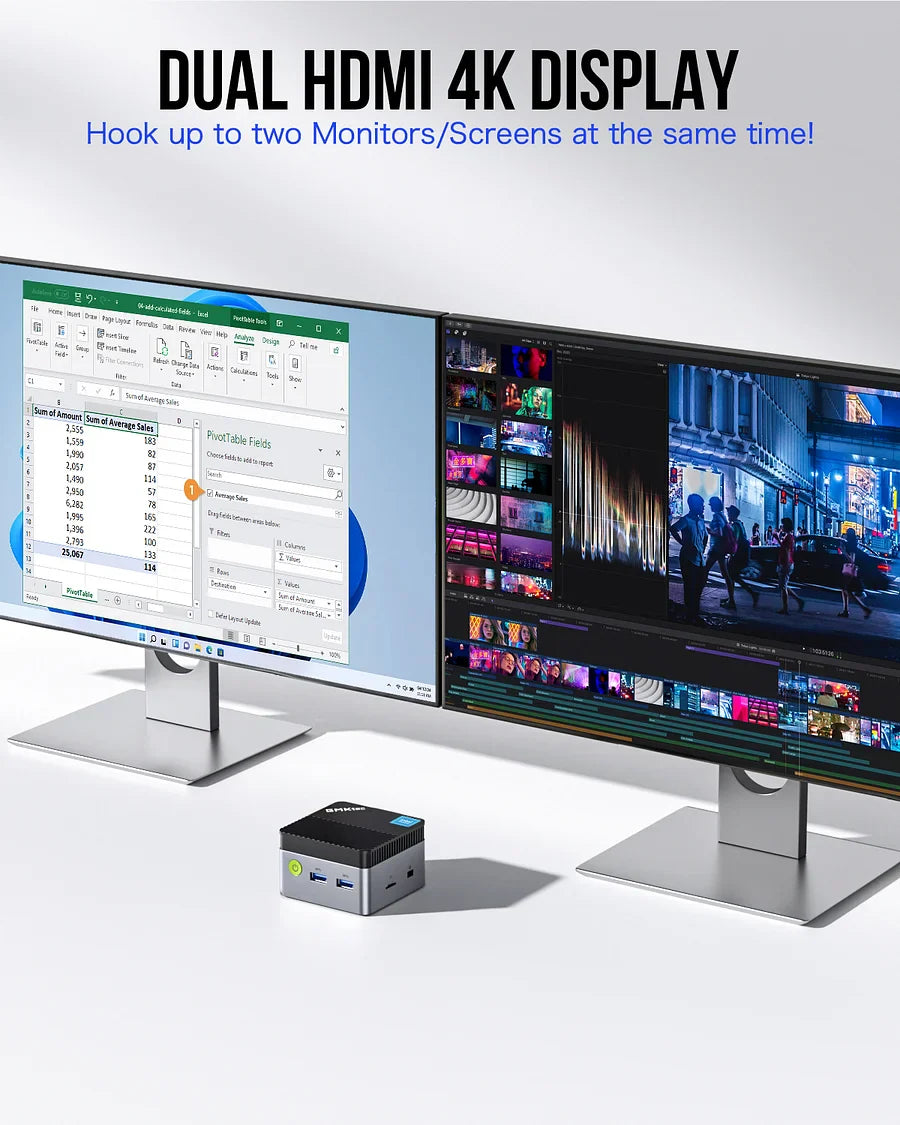 Zasilany nowoczesnymi procesorami dla maksymalnej mocy obliczeniowej. Nasze mini-PC oferują wydajność na poziomie desktopu w kompaktowym rozmiarze, idealnym do pracy i rozrywki.
