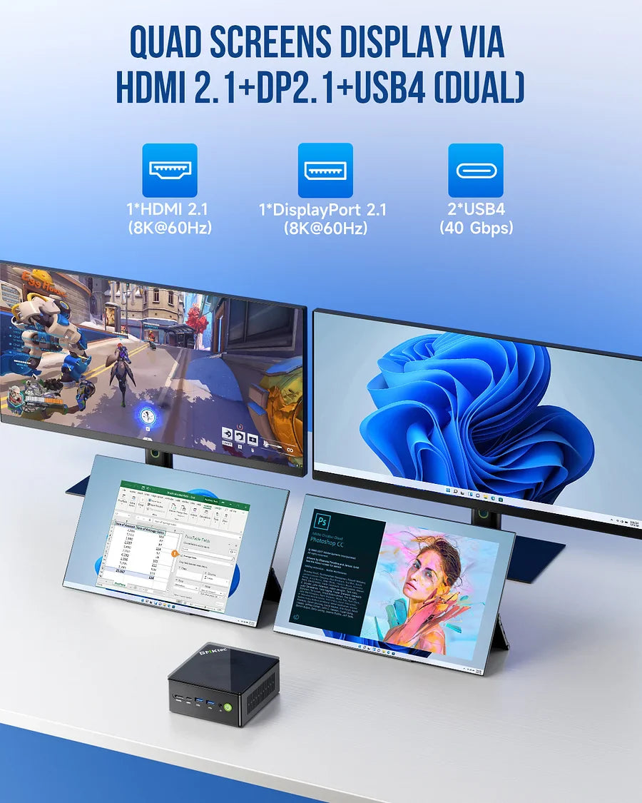 Zasilany nowoczesnymi procesorami dla maksymalnej mocy obliczeniowej. Nasze mini-PC oferują wydajność na poziomie desktopu w kompaktowym rozmiarze, idealnym do pracy i rozrywki.