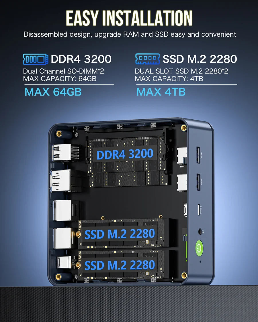 Zasilany nowoczesnymi procesorami dla maksymalnej mocy obliczeniowej. Nasze mini-PC oferują wydajność na poziomie desktopu w kompaktowym rozmiarze, idealnym do pracy i rozrywki.