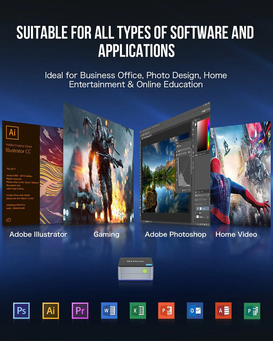 Zasilany nowoczesnymi procesorami dla maksymalnej mocy obliczeniowej. Nasze mini-PC oferują wydajność na poziomie desktopu w kompaktowym rozmiarze, idealnym do pracy i rozrywki.