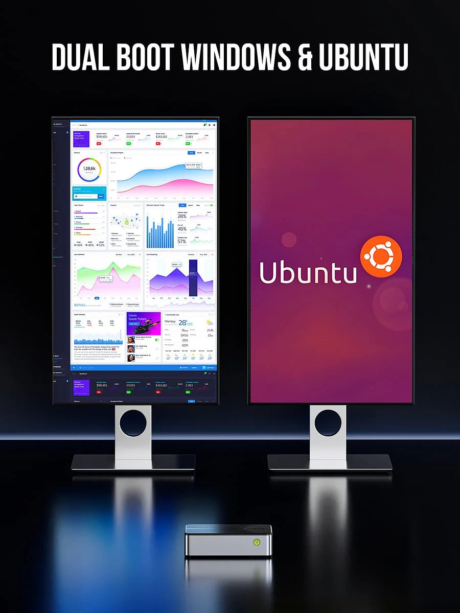 (5) Dual OS i Nowoczesna Łączność: Windows 11 + Ubuntu wstępnie zainstalowane, podwójne LAN 2.5G, Wi-Fi 6, Bluetooth 5.2, idealne do P2P i domowych laboratoriów.
