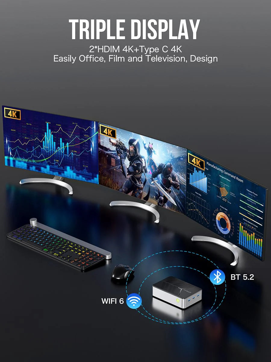 Zasilany nowoczesnymi procesorami dla maksymalnej mocy obliczeniowej. Nasze mini-PC oferują wydajność na poziomie desktopu w kompaktowym rozmiarze, idealnym do pracy i rozrywki.