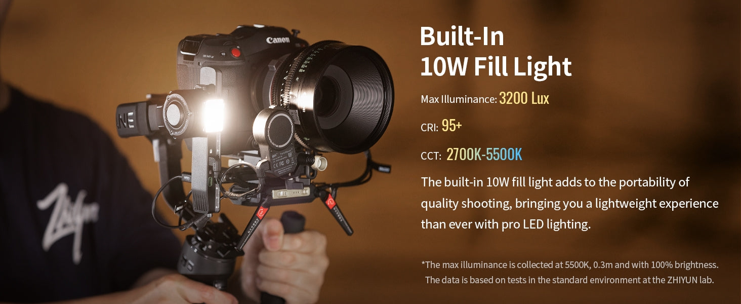 Regulowana temperatura barw (2700K-5500K). Mocniejsze niż DJI RS3.