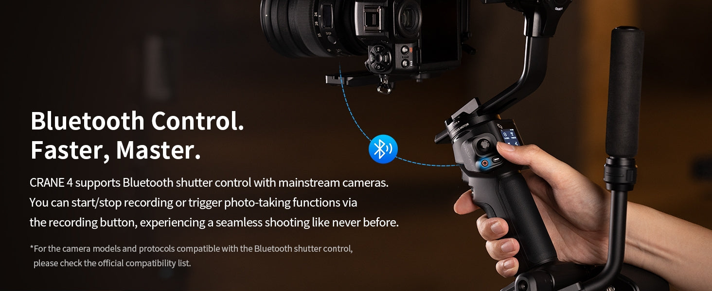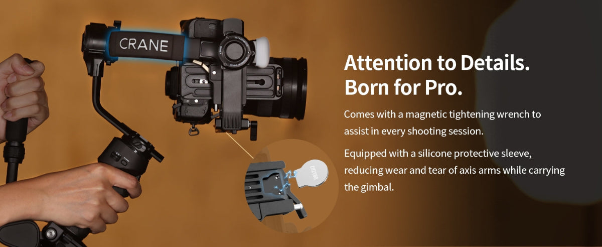 Dzięki dłuższej długości ramienia, mocniejszym silnikom i przedłużonej płycie szybkowego zwalniania, CRANE 4 bez wysiłku i bezpiecznie obsługuje pełnoklatkowe aparaty DSLR i kompaktowe kamery filmowe. Uwolnij pełną moc, nie rezygnując z mobilności.