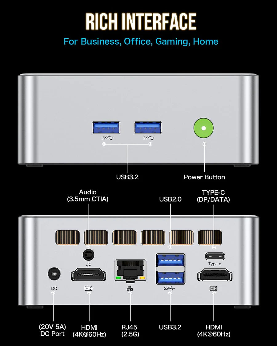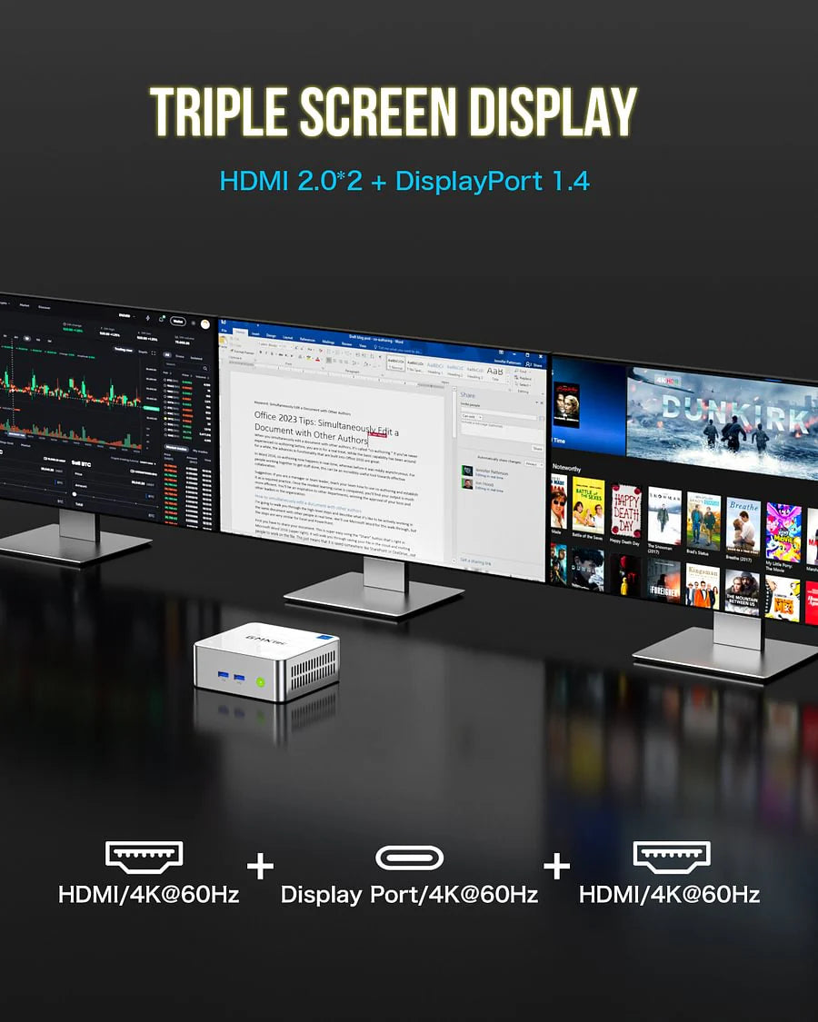 Zasilany nowoczesnymi procesorami dla maksymalnej mocy obliczeniowej. Nasze mini-PC oferują wydajność na poziomie desktopu w kompaktowym rozmiarze, idealnym do pracy i rozrywki.