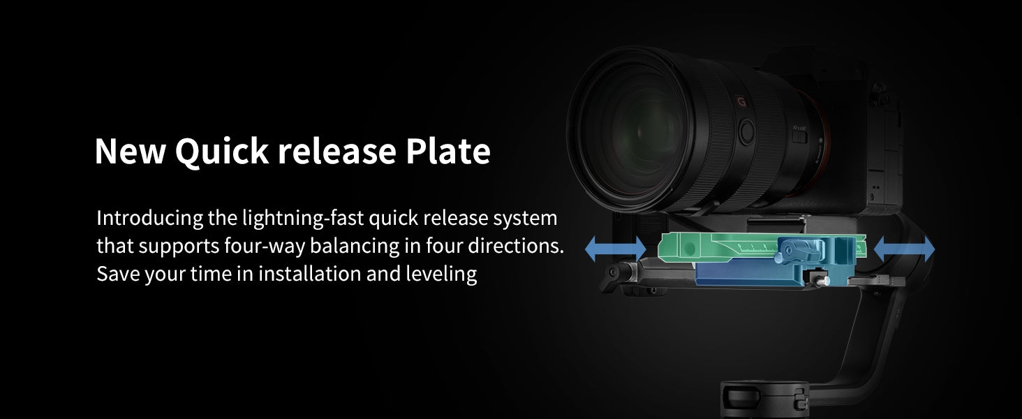 Algorytm 10. generacji zapewnia nagrania bez drgań nawet z Sony A7IV + obiektywem 24-70mm GM. Szybkozłączka do szybkiej wymiany kamer.