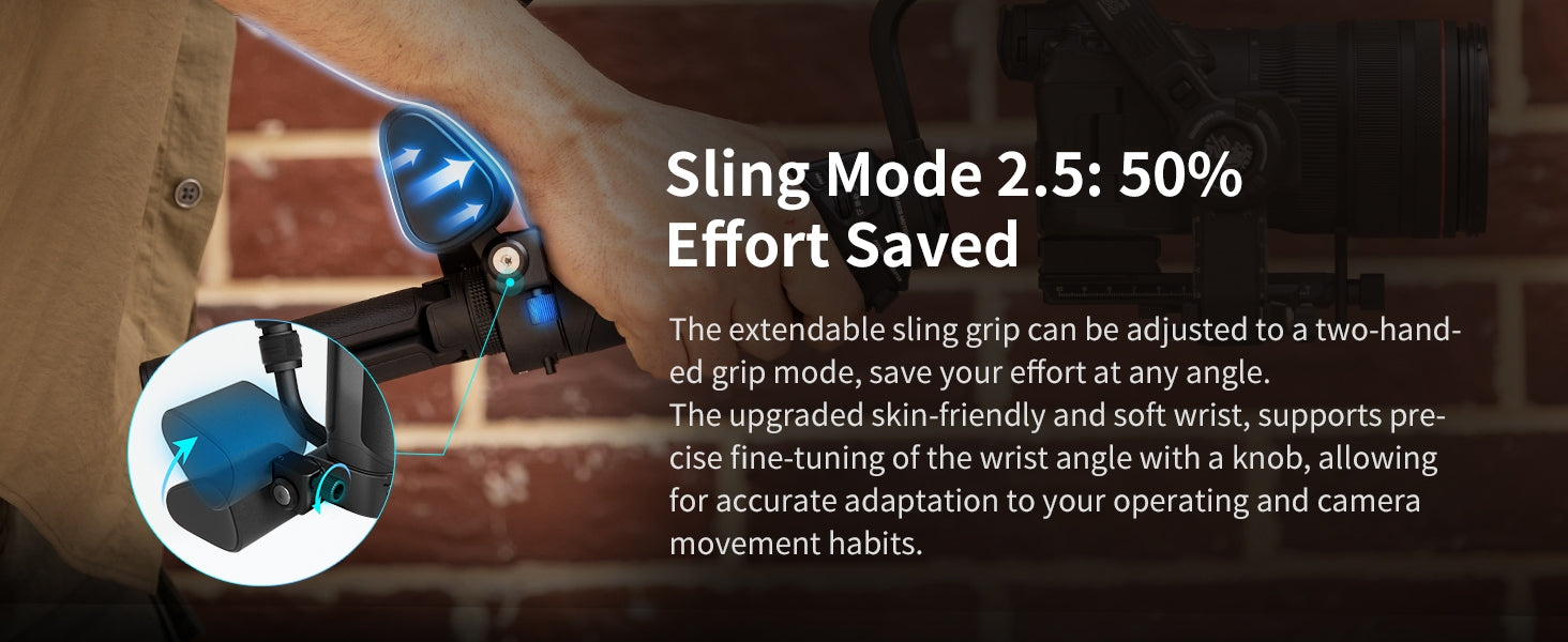 Jedno przyciśnięcie do nagrywania/sterowania zdjęciem przez Bluetooth (Sony/Canon/Nikon). Ergonomiczny uchwyt sling zmniejsza zmęczenie ramion o 50% podczas ujęć z niskiego kąta i ręcznych.