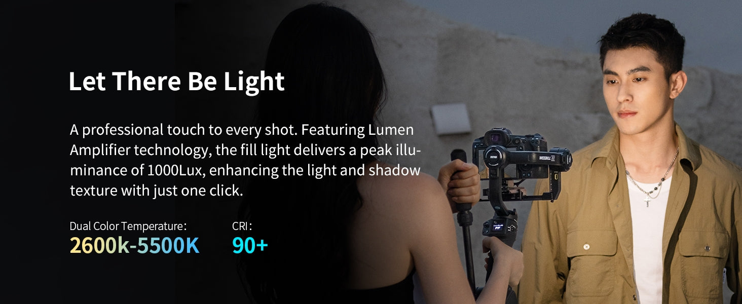 Diody LED o podwójnej temperaturze barwowej (2600K-5500K) eliminują cienie podczas vloggingu, wywiadów i tworzenia treści w słabym świetle – bez potrzeby dodatkowego sprzętu oświetleniowego.