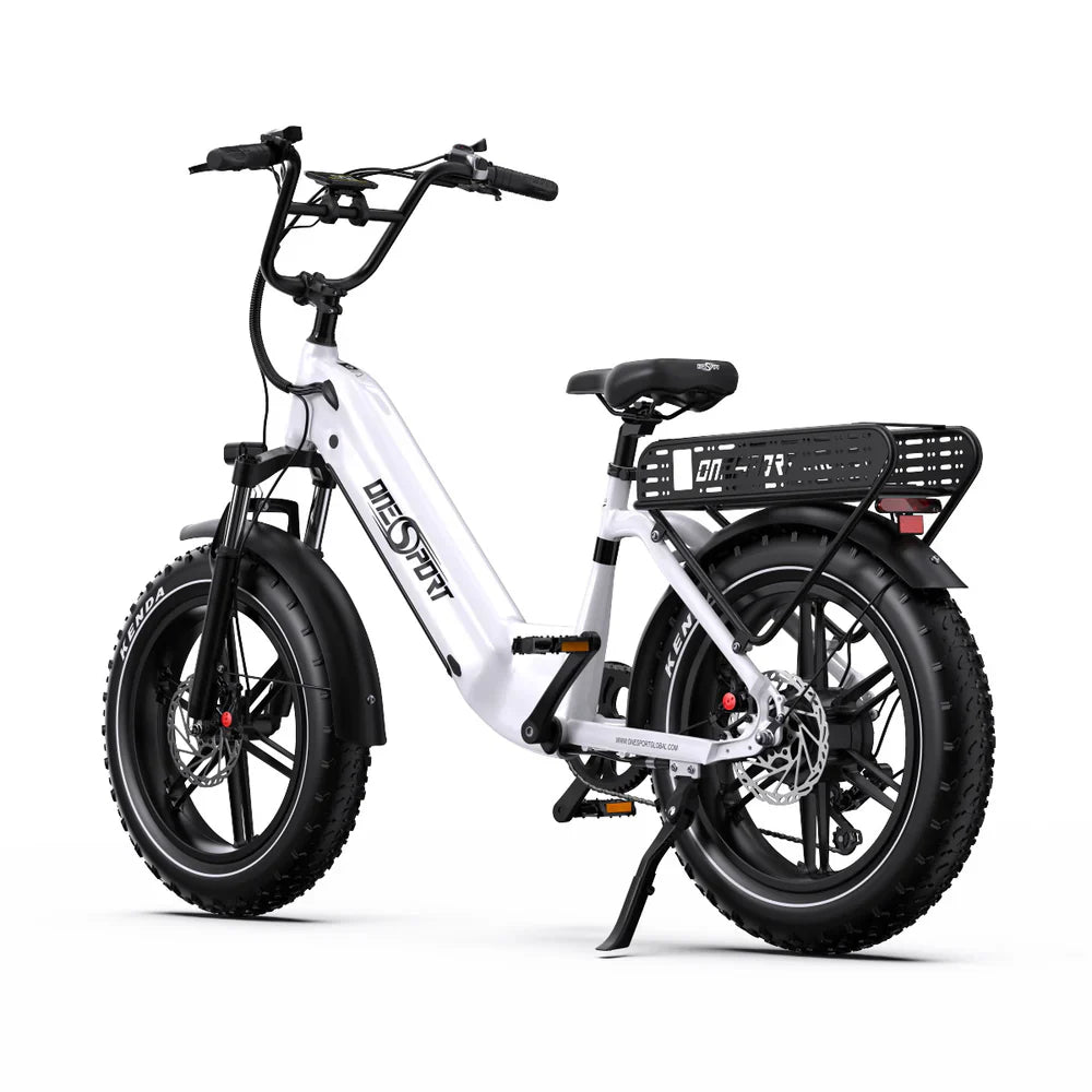 (2) Premium bezpieczeństwo i wydajność w każdych warunkach: hydrauliczne hamulce tarczowe (przód/tył) z rotorami 180 mm – pewne zatrzymywanie w deszczu lub podczas pełnego hamowania. Opony Kenda 20x4 cale + widelec amortyzowany dla stabilności na kostce brukowej, śniegu lub żwirze. IPX4 odporność na zachlapanie i odpowiednie dla temperatur od -10°C do 40°C – idealne na niemieckie pory roku.