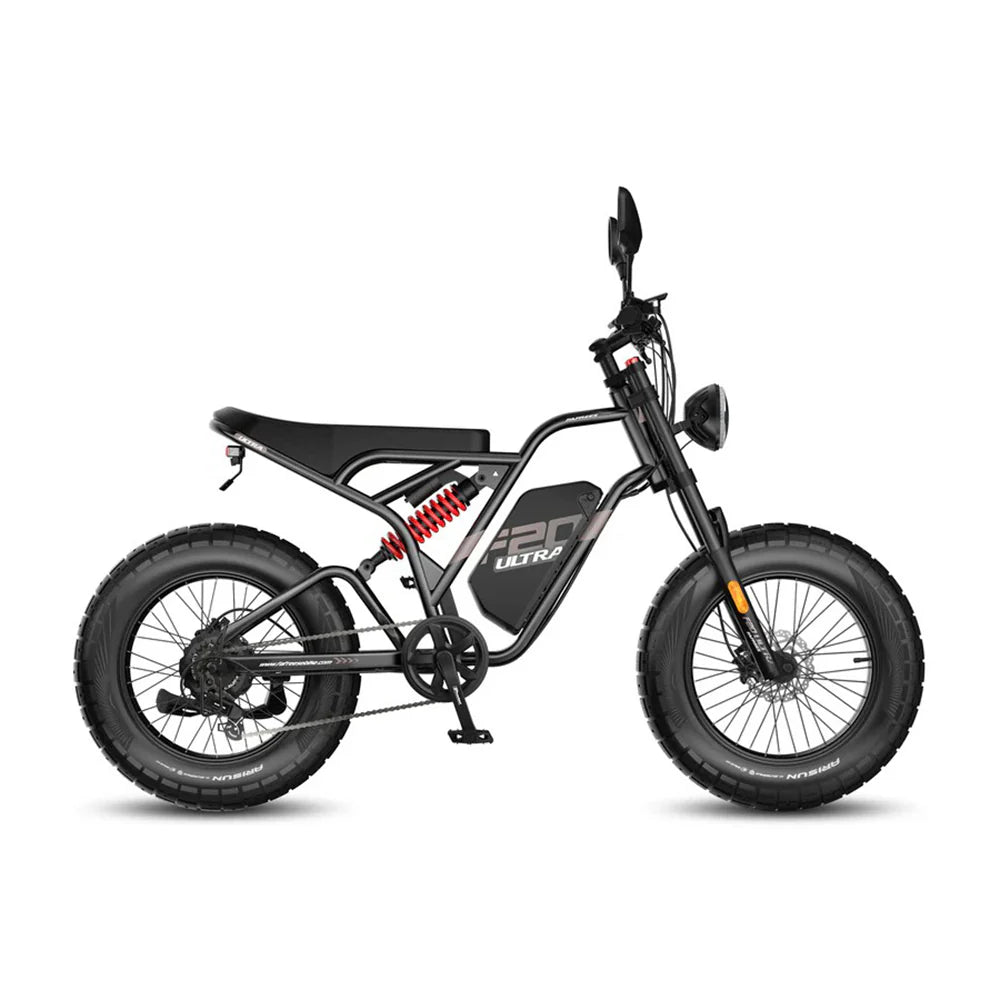 (4) Opony fat 5.0" do wszystkich terenów: Opony 20"×5.0" odporne na przebicia do jazdy po piasku, śniegu i w mieście.