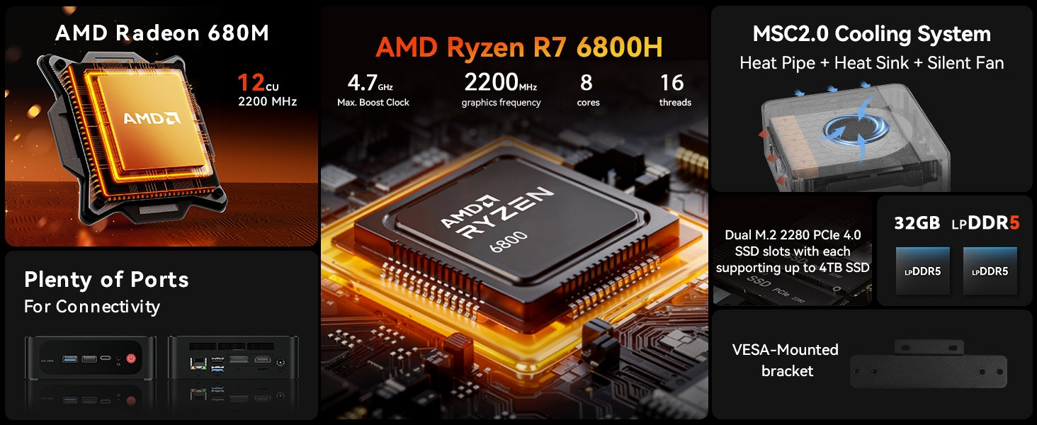 Zasilany nowoczesnymi procesorami dla maksymalnej mocy obliczeniowej. Nasze mini-PC oferują wydajność na poziomie desktopu w kompaktowym rozmiarze, idealnym do pracy i rozrywki.
