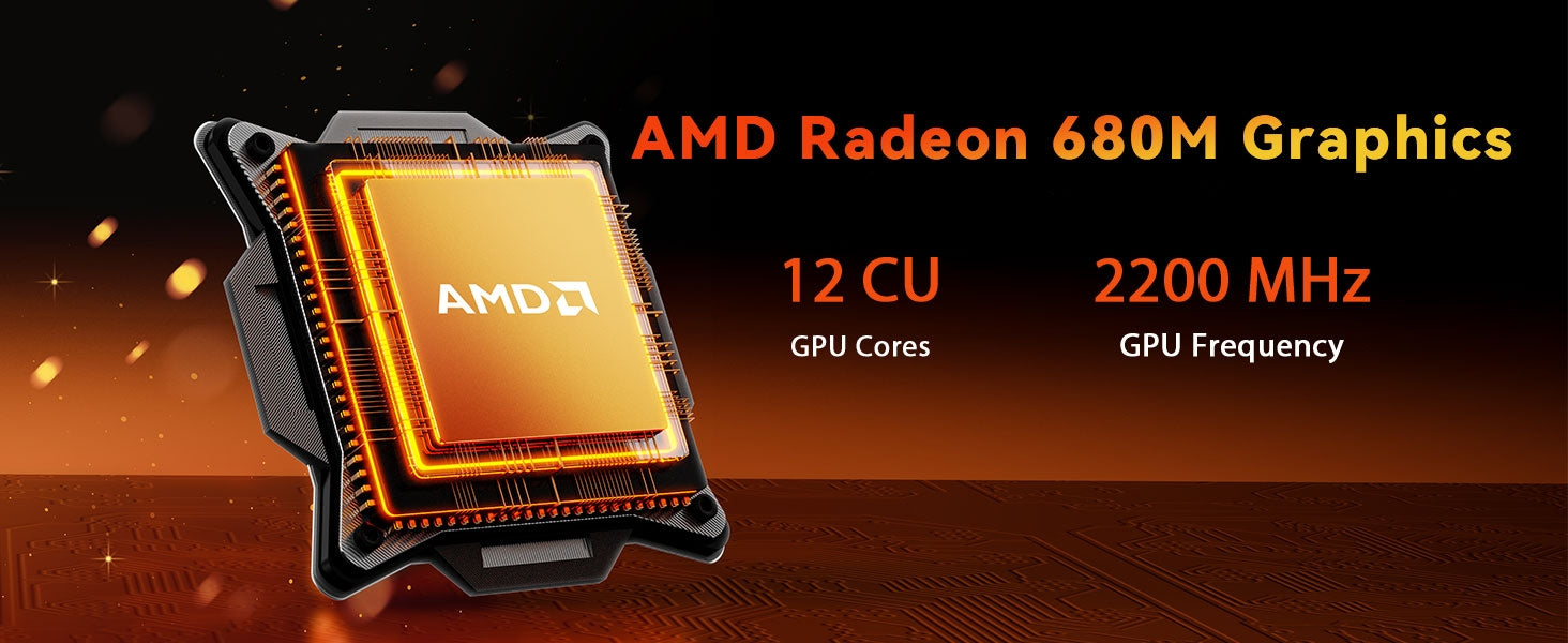 (4) Podwójny Wyświetlacz 4K@60Hz: Wyjścia HDMI i DisplayPort 4K z grafiką AMD Radeon dla ostrych wizualizacji, idealne do wielozadaniowości lub kina domowego.
