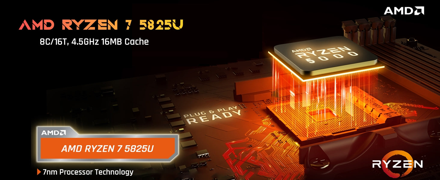 (1) AMD Ryzen 7 5825U: 8 rdzeni/16 wątków (do 4.5GHz) z grafiką Radeon (8 rdzeni, 2000MHz) do edycji 4K i gier.