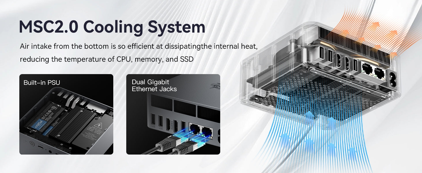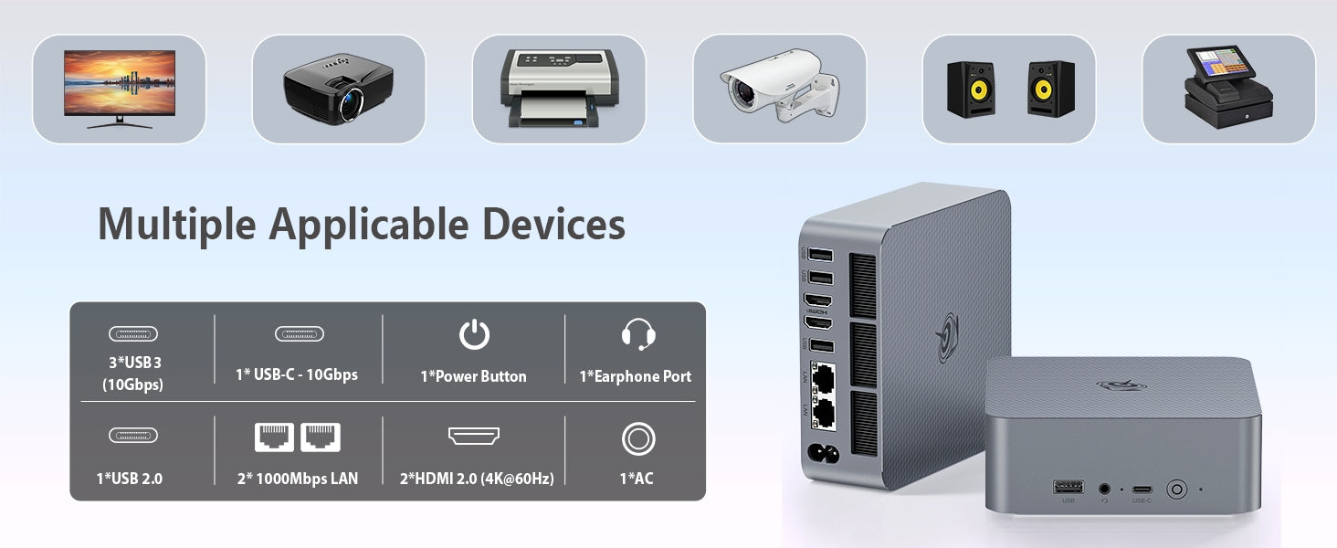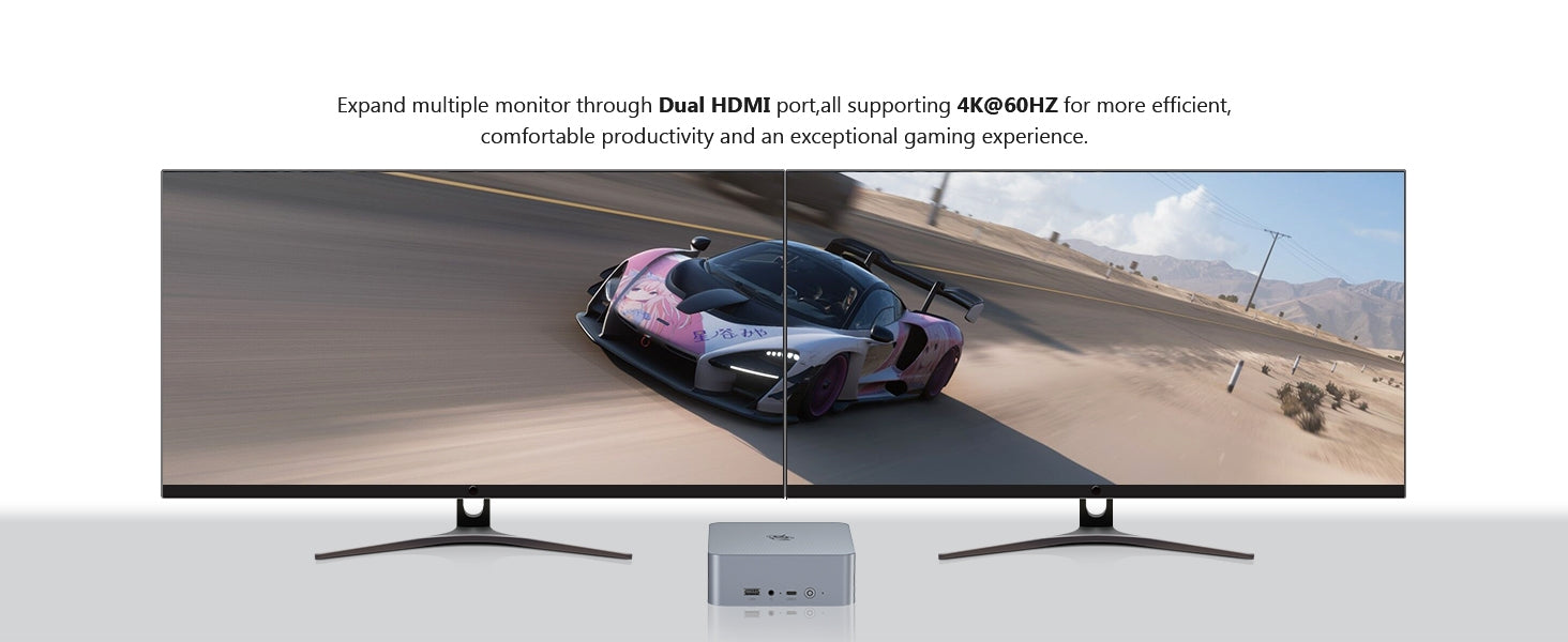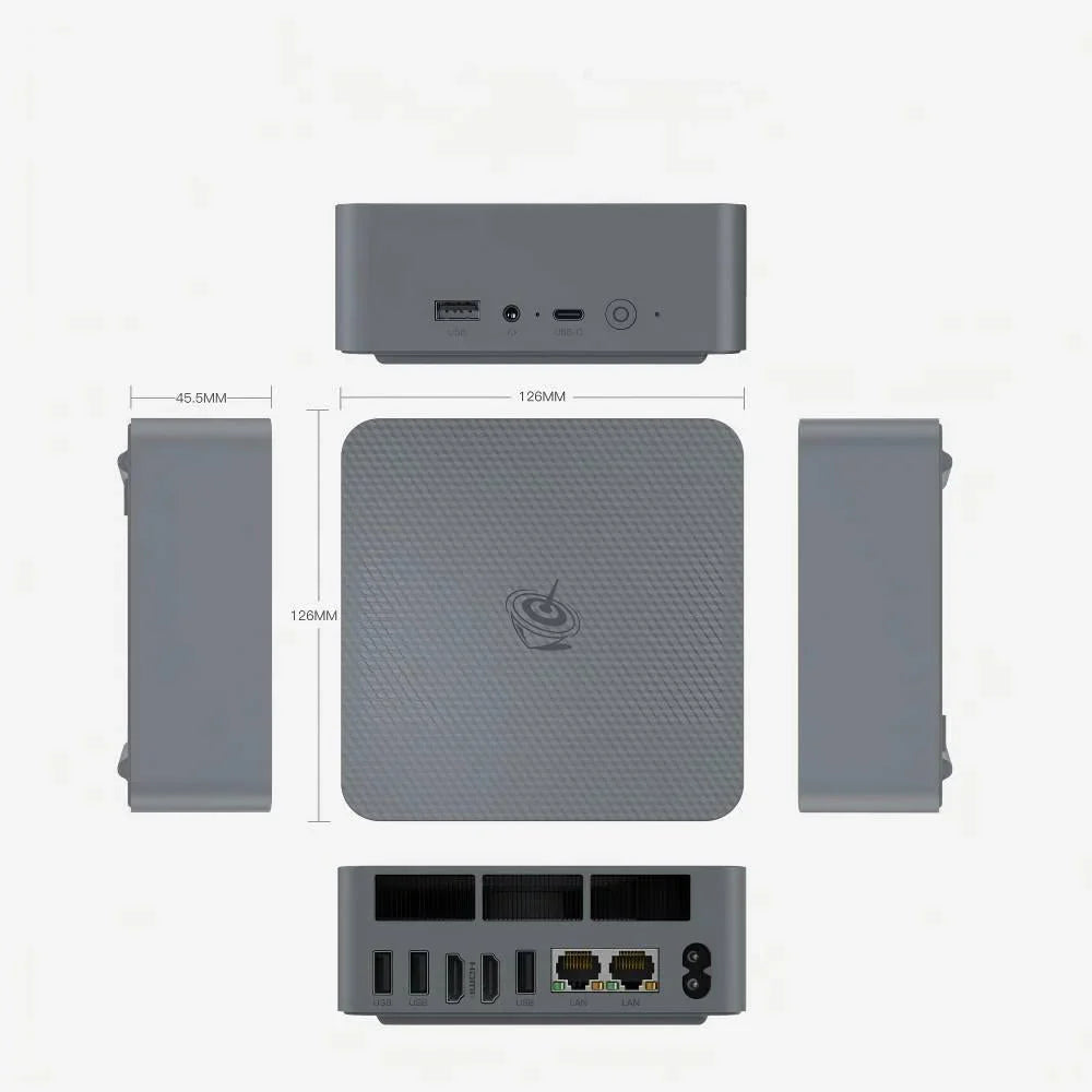 (5) Kompaktowy, ale Pełen Funkcji: Mały (126×126×45.5mm), ale potężny, wspiera podwójne wyświetlacze 4K przez HDMI, idealny do użytku domowego, biurowego i profesjonalnego.