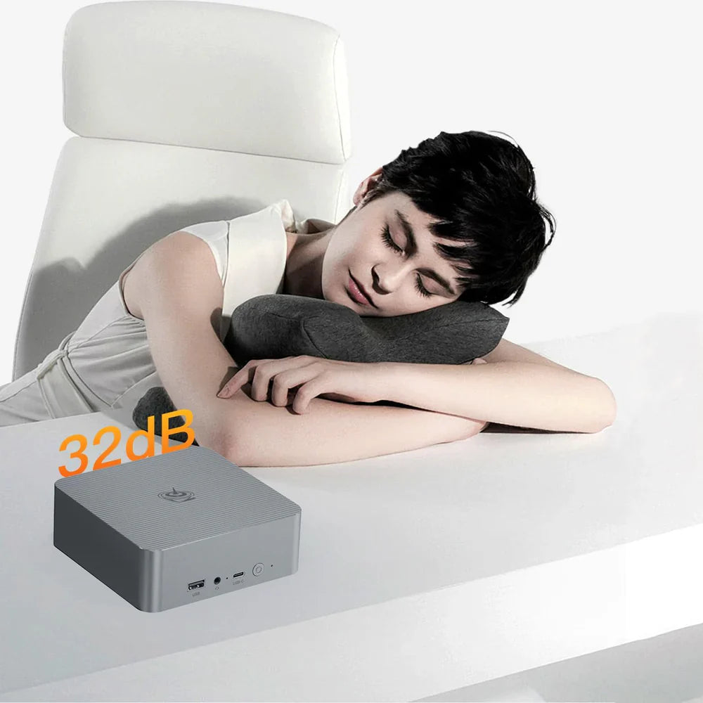 (3) Prawie Cicha Praca z Efektywnym Chłodzeniem: Ultra-cichy design o głośności 32dB z zaawansowanym chłodzeniem (rury ciepłownicze + cichy wentylator) utrzymuje niskie temperatury CPU, RAM i SSD, zapewniając miejsce pracy bez zakłóceń.