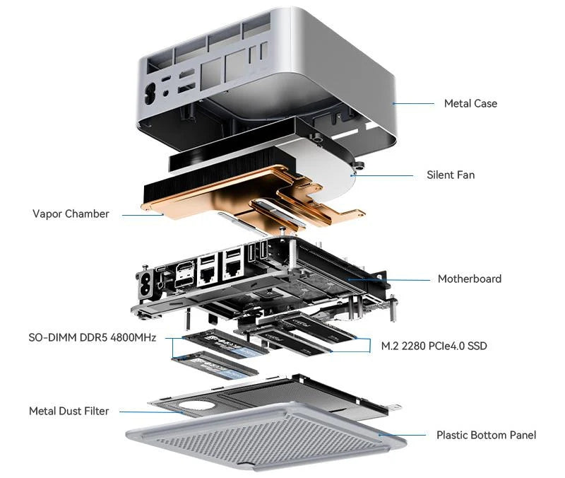 Zasilany nowoczesnymi procesorami dla maksymalnej mocy obliczeniowej. Nasze mini-PC oferują wydajność na poziomie desktopu w kompaktowym rozmiarze, idealnym do pracy i rozrywki.